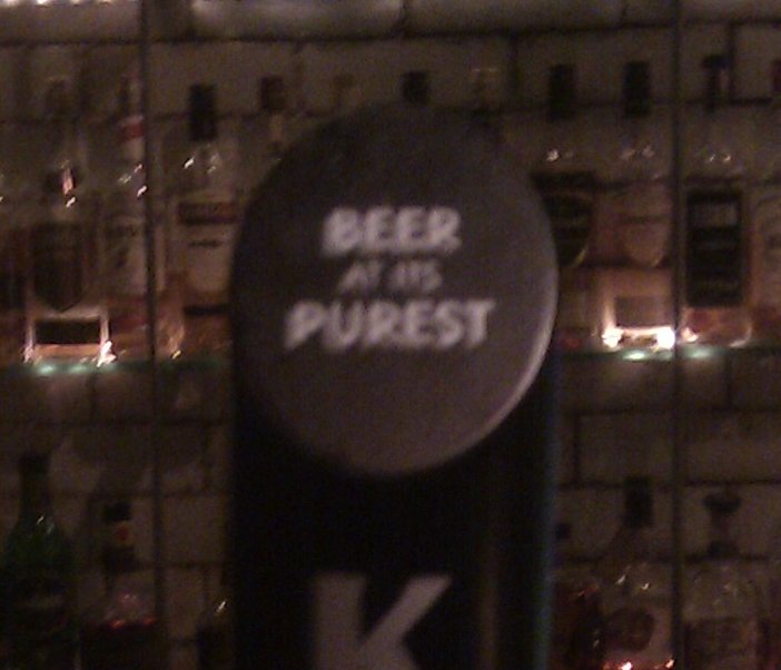 Ommegang on the blackboard, but this isn't from Duvel-Moortgat's New York operation, it's by Brouwerij Haacht, one of their Keizer Karel series. There's not much going on in it: it's a middle-of-the-road 8% ABV blonde ale with some nice herbal bitterness but then a nasty contrast of dry fizziness and alcoholic burn. Time to see what's on tap.