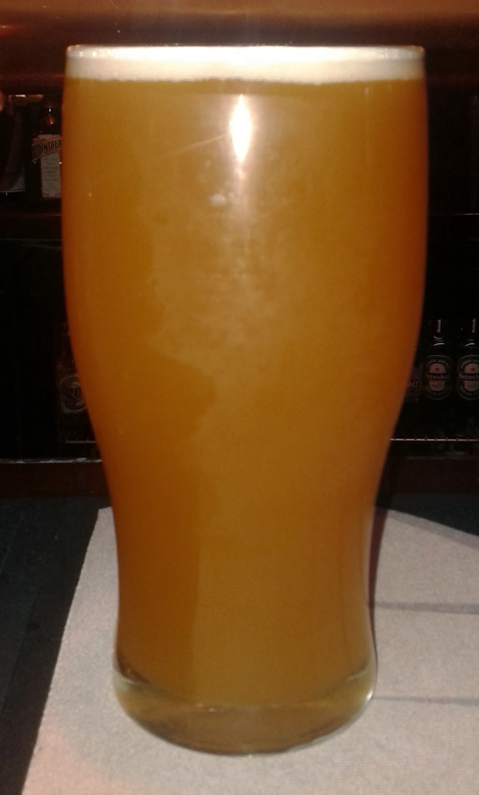 First, to give it the treatment every beer gets. The first can was kept in my beer fridge at 10°C. As the picture shows, the can is "cold", but not "Rocky Mountain cold". It's a very pale yellow and there's masses of fizz. The head subsides most of the way but a thin white mousse remains, constantly topped up by the busy bubbles. The aroma offers an odd mix of tin and ripe apples. That sweet fruit thing is the opening flavour but it disappears quickly, replaced by... nothing. There's a huge void right where you'd expect the main part of the taste to be. It's not watery -- the texture is actually quite slick and heavy -- but no identifiable malt elements and certainly not even a whimper from the hops. There's maybe just a tiny metallic buzz on the side of the tongue. Boring beats awful every time, but I really didn't think it would be hard to find things to say about this beer. Quite an achievement of the brewer's art.