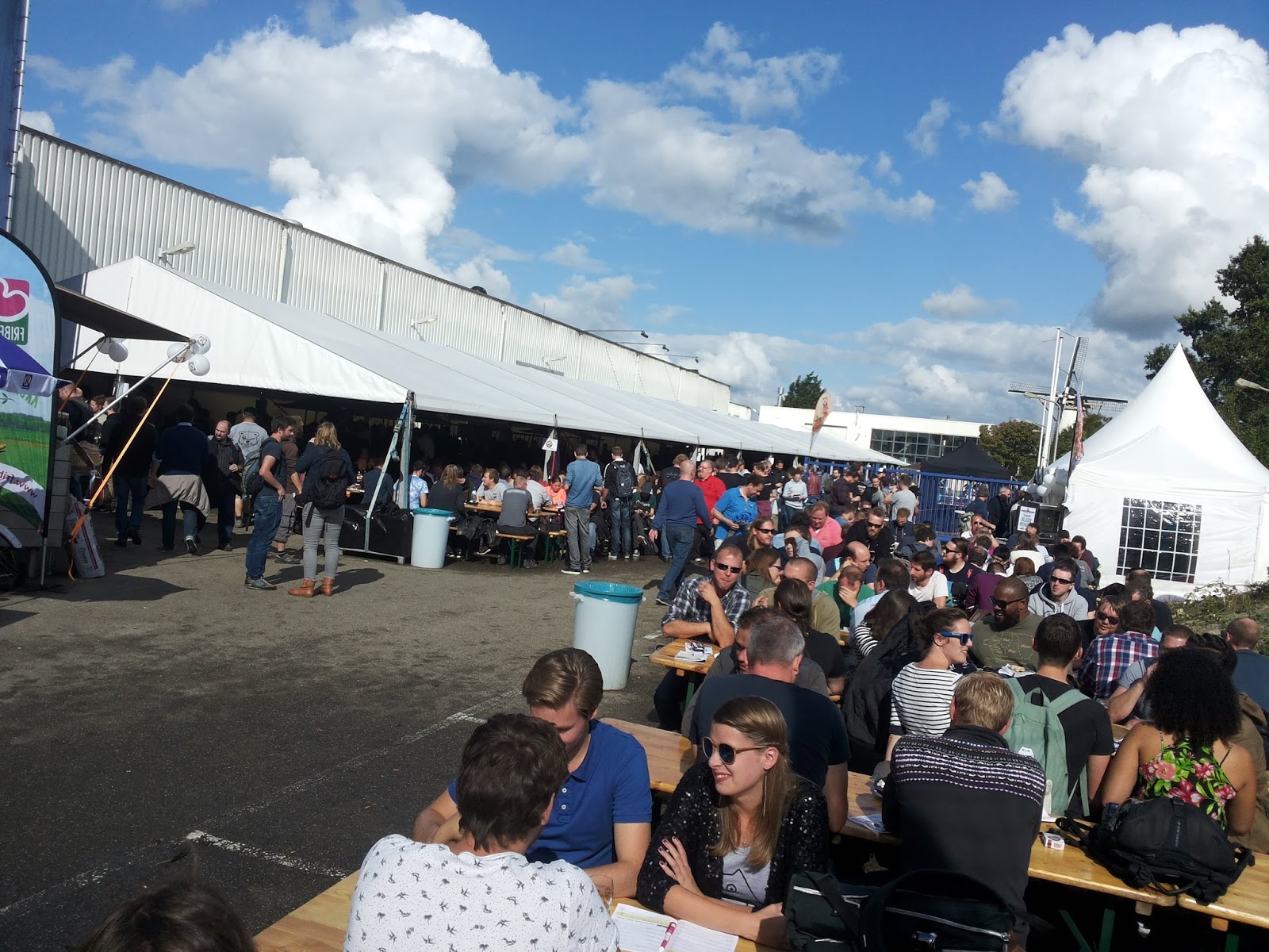 And finally, away in a corner, Borefts veterans Magic Rock. I was all over their Ginspired, having loved the G 'n' T radler that Uiltje brought last year. It's badged as a "Gin & Tonic IPA" but I really got no sense of the mixed drink from it. Plenty of bitter citrus rind, though, but otherwise a little sweet and sweaty. It doesn't work as a novelty beer and barely works as a beer at all. I also failed to detect the rhubarb and ginger in Magic Rock's Rhubarb & Ginger Saison, which doesn't matter in the slightest because it's a lovely beer with a lemon tartness and a quick, sharp spicy burn which makes it beautifully refreshing. Looking it up now, I'm surprised to find it was 5.9% ABV. And to go out, a Bearded Lady imperial stout in the Pedro Ximinez edition. And the dark sherry really makes a big contribution, filling the aroma with raisins and dominating the foretaste as well. Only later on does the proper stouty roast come through, accompanied by an invigorating hop bitterness, but really it's all about the grapes and is all the more enjoyable for it.Borefts 2015 was every bit as good as any previous year and the turnover of breweries and beers is its best feature: for every old favourite I missed there was someone new and exciting. It has got a lot busier since the early days; gone are the quiet afternoon sessions, but the infrastructure has expanded to cope with it: if you don't want to squeeze onto a bench outside or under the tent, the new upstairs seating area in the brewery was a welcome addition this year.