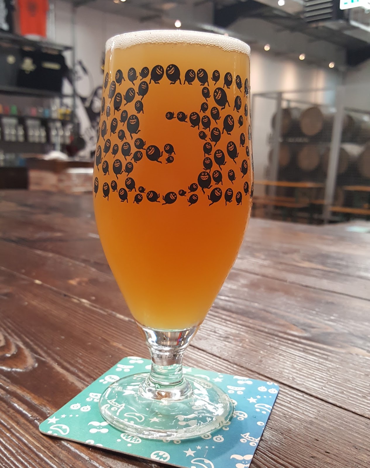 Amarella Pale, 3.9% ABV and three of your English pounds for one of your imperial pints. It's a lovely shade of dark gold and the hop varieties portmanteau'd in the name absolutely shine out from the first sip, all peaches and mandarin on a bouncey bubblegum base. Behind this sits a harder waxy bitterness which I found irritating until I got used to it. It actually helps the drinkability by providing a cleansing balance to the fruity sweetness. While it did start getting a little metallic towards the end, I would definitely have had another if I had the time, which I didn't.
