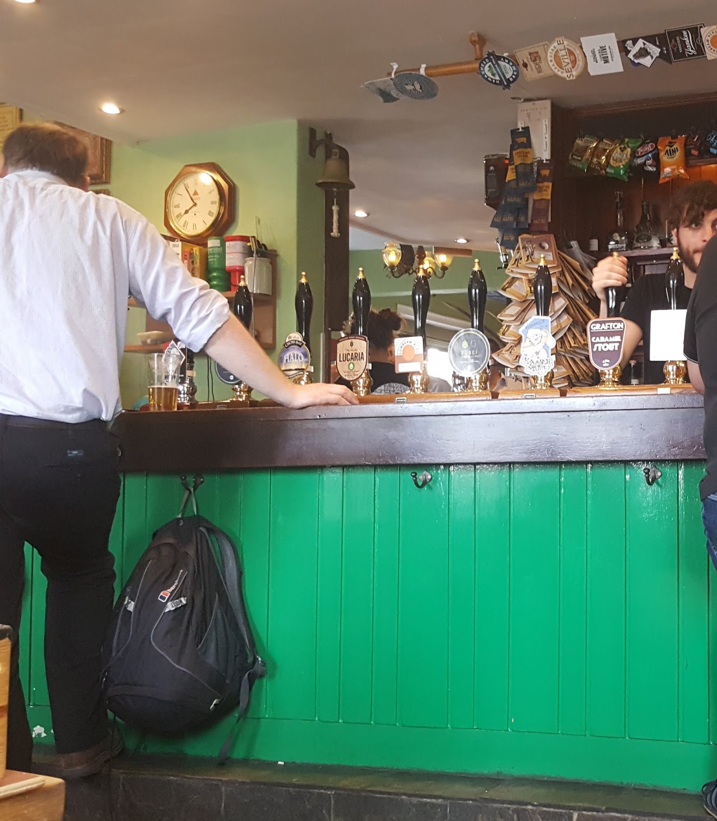 That said, being on a tight schedule, I did choose most of the places I visited based on prior research, since visiting the more famous pubs anywhere is just common sense. But there was one totally personal pick: The Three Tuns, which was the first place I went to. I drank my first ever pint of English beer here, on a bracing April night in the mid-1990s. John Smith's Magnet. A pint of Strongbow followed, to prevent the memory getting too rose-tinted. Anyway, it's a nice pub, long and narrow and built into a steep hill so is split-level. There's a decent, but not excessive, selection including a couple from a local outfit I'd never heard of, Blue Bee.