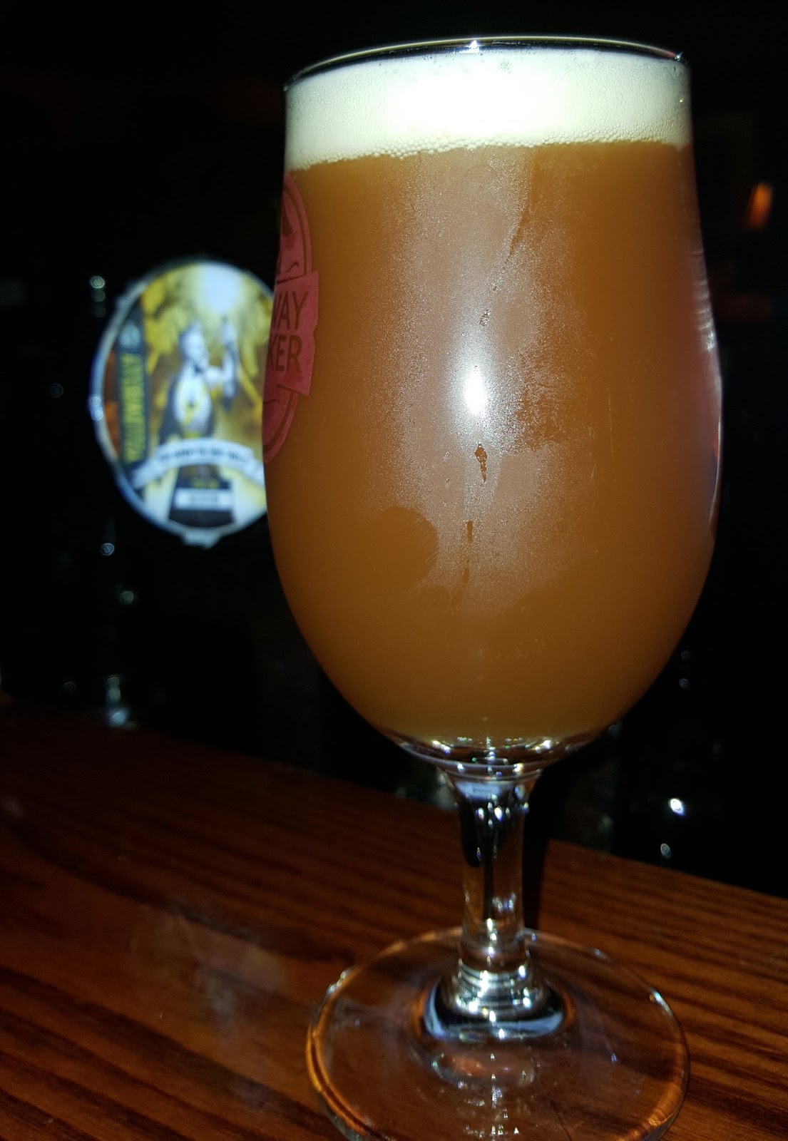 Ruse, a client brewer which uses the Culmination kit to create beers for the local art community and its events. How very Portland. This one is 6.6% ABV and a slightly darker orange than Phaedrus. I got a bit of worrying stickiness on the nose, but thankfully that ended right there. There's a touch of aspirin dryness and it's spicy rather than fruity: a mild sweetness present but under control. This is another decent, easy going IPA, though rather less complex than its cousin.