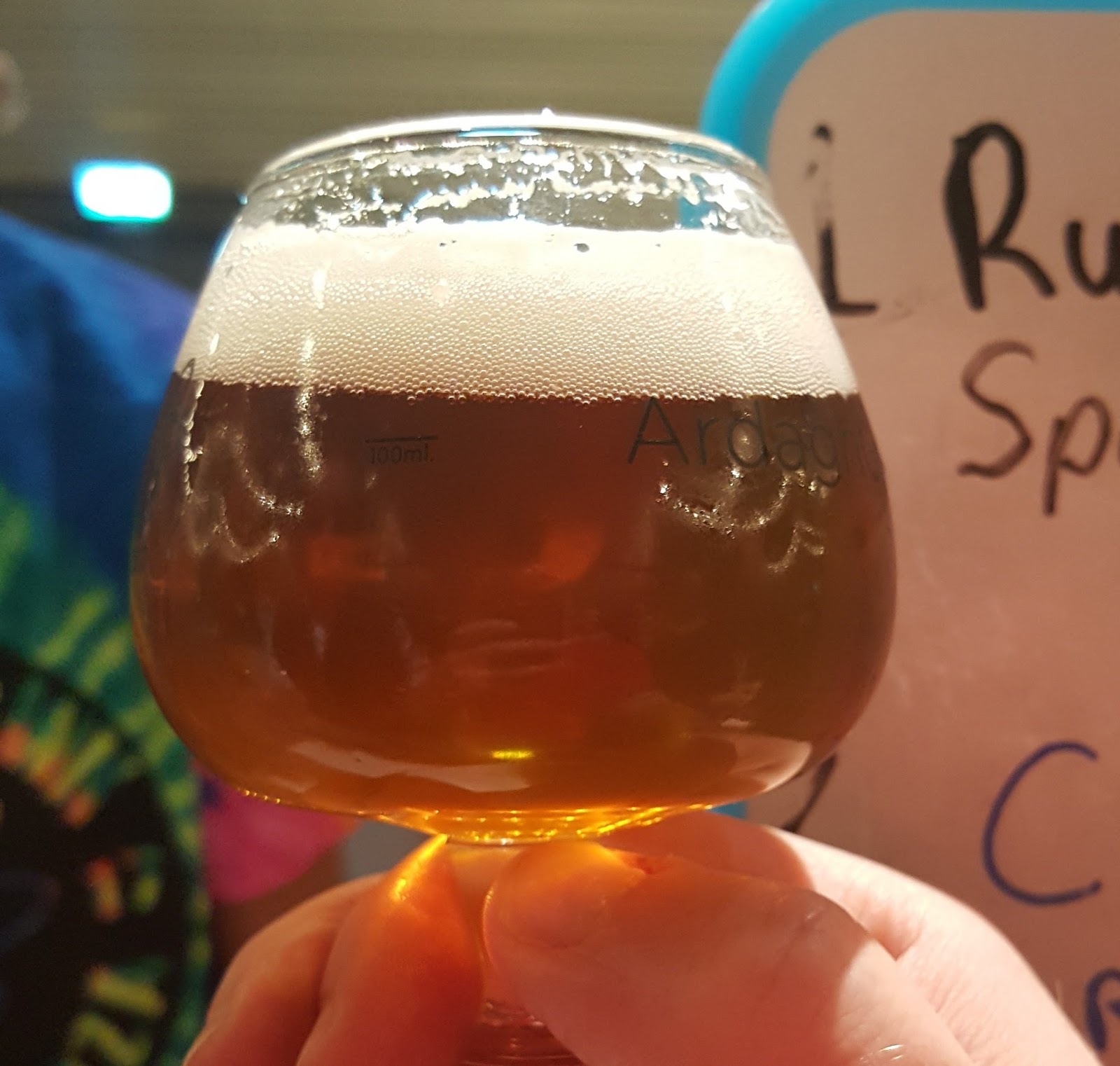 Something strong and sippable was required for parade-watching on Sunday afternoon, and that was Den Twaalfth by 't Gaverhopke, whose name is also its ABV and recommended serving temperature. This is jet black and completely flat, tasting sweetly and boozily of rum and raisin. It still manages to stay light of body, however, which does wonders for its drinkability. It's one I would have liked to have taken a closer look at, but needs must.