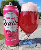 Being at home on the June Bank Holiday Sunday meant being an involuntary audience member at the Forbidden Fruit music festival, taking place at The Royal Hospital Kilmainham but broadcast directly onto my patio some distance away. I got out some fruit of my own and made the best of it.I began on Utenos Radler Raspberry, blended from half lager and half raspberry-flavoured syrup cocktail, finishing at 2% ABV. It's bright pink, thanks to the carrot named on the can as the source of its colour. I found it very thick and syrupy, and was hard pressed to find the beer element in it. The raspberry is sweet, not tart, and more closely resembles jelly or candy than actual berries. That hampers the all-important refreshment power; it's not difficult drinking by any means, but neither is it much cop at warm-day thirst quenching.