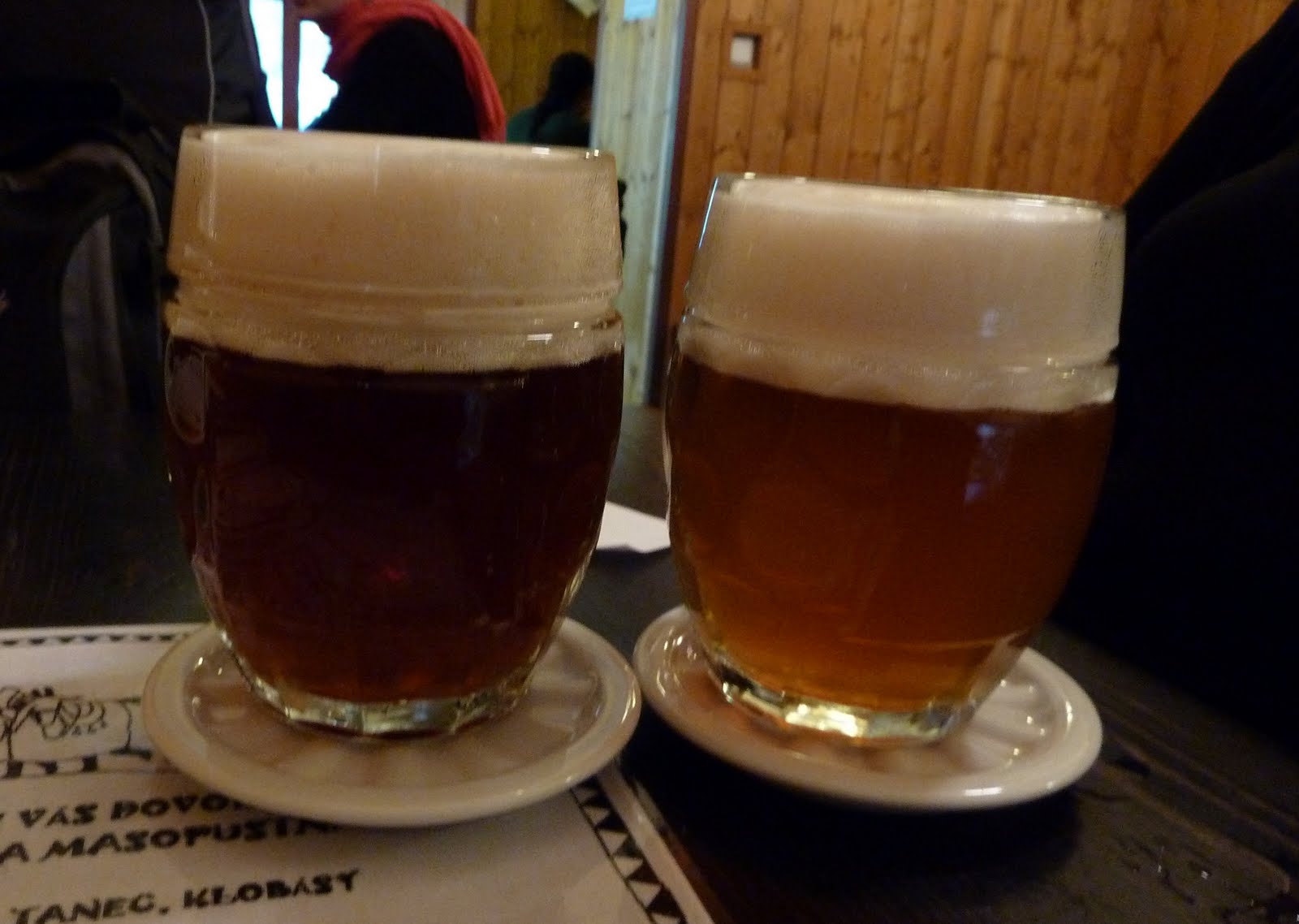 Representing the southern end of the tour is Pivovar U Bansethu, a short walk from Zlý Časy and worth dropping in to when you're in the area. It was brewday on our visit, and the small narrow premises was thick with malt smells, like you could get a full day's nutrition on just a lungful. Just two beers were on and we ordered one of each, noting without looking the moment the brewer threw the first hops into the boil as the atmosphere changed from cookies and sweet porridge to grapefruit and cut grass. Basta Světlé is a remarkably bitter unfiltered lager, weighty and with that rough waxy flavour I've encountered in a few Czech microbrews. Nothing darker than Basta Polotmavé was on, a red-amber lager tasting lightly and pleasantly of milky toffee, finishing with a nice herbal complexity. Workmanlike is how I'd describe U Bansethu's beers, though it could well be that I caught them on one of their less interesting days, drinkwise, if not smellwise anyway.