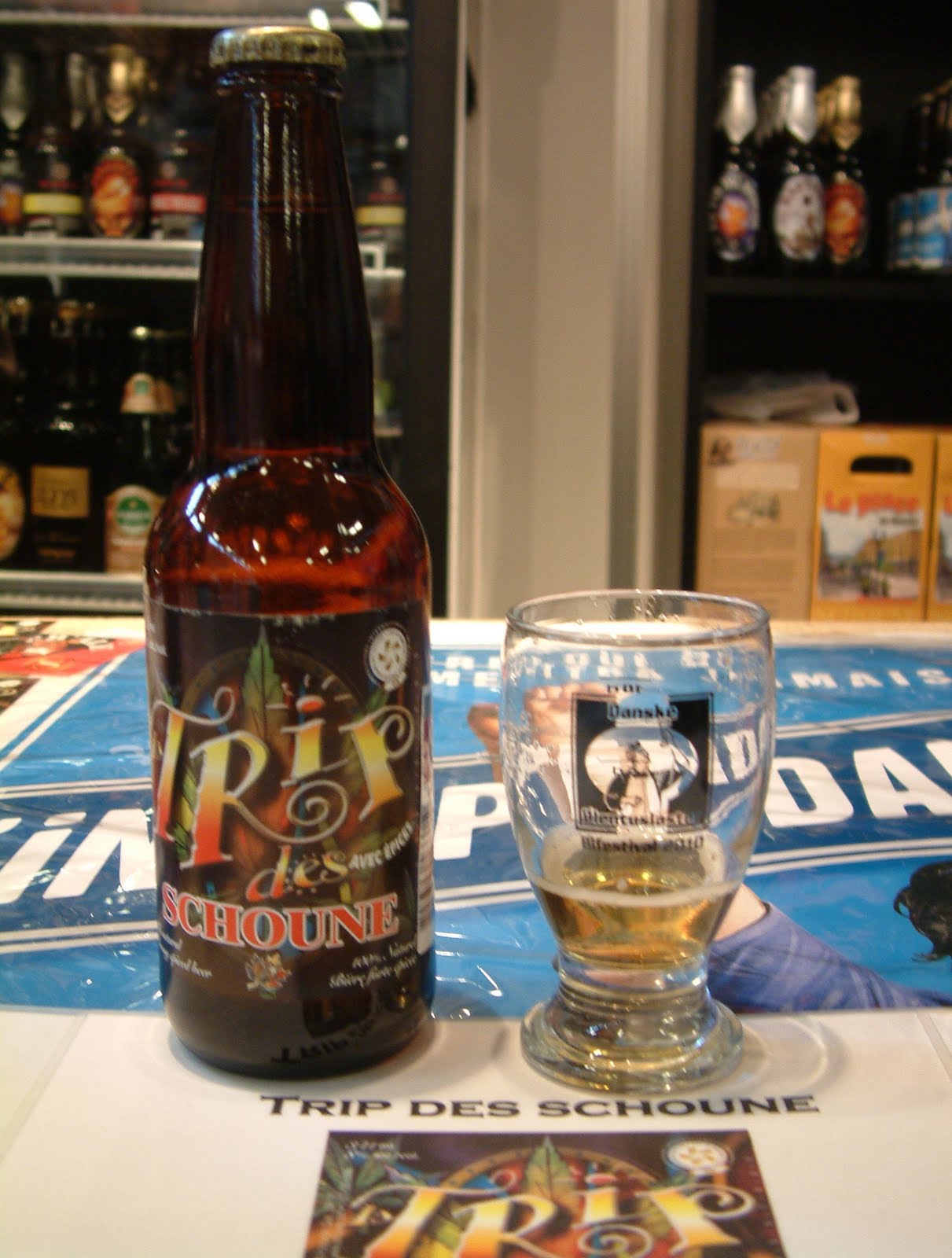 One last set of North American imports came from a stall pushing the beers from Schoune, a farm brewery in Quebec. Obviously there's a major Frencher-than-the-French theme happening. There's also some serious maple notes in the beers, most of all in A L'Erable which is made using lots of maple syrup -- produced on site like all of the ingredients. The syrup has fermented out a lot of the way, so the base beer is dry, but there's a lovely woody maple taste left behind. Erabière is even more mapley, especially on the nose, though actually tastes sour. Strange and very interesting. On the sweeter side there's Premier Baiser, a very drinkable sweet blonde, and Trip des Schoune, made with hemp for a light and spicy sweetness. On the darker side there's 1608 which is warm and roasty and Hivernale an incredible sandalwood-spicy winter beer which is like drinking incense. Lovely.Some more beers from abroad next, before we get back to Denmark.