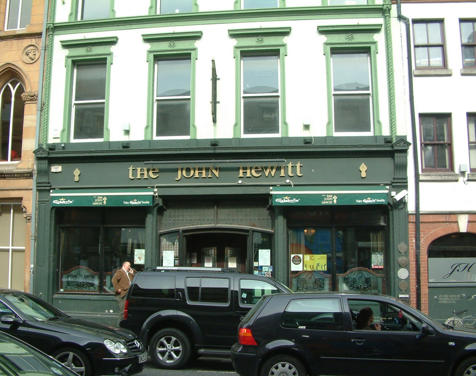 A shortcut through the generic-UK-shopping-centre Victoria Square brought us out at Bittles, a quite charming narrow pub where whiskey is the dominant theme. The bottled beer selection is quite decent, between local and Scottish micros, but I plumped for a pint of keg Samuel Smith's Old Brewery Bitter, just for the novelty. It's sweet and Tizery, probably pairing well with a dram or two of the decent. The beer lover, meanwhile, moved on again.Just across the alley, in fact, to The Kitchen. This pub was demolished and rebuilt as part of the Victoria Square redevelopment. While there's no doubt that a lot of the original charm was carried off in skips years ago, it holds a reputation as a proper beer pub and I reckoned it was well worth investigating. I probably should have known when I met a woman at the door dressed head-to-foot as a Magners pear that my visit wouldn't end well. In fact, it ended some thirty seconds later when I observed that the clips on the two handpumps on the bar were turned around, and everything else on sale was muck. Another blow for my perception of the Belfast beer scene.