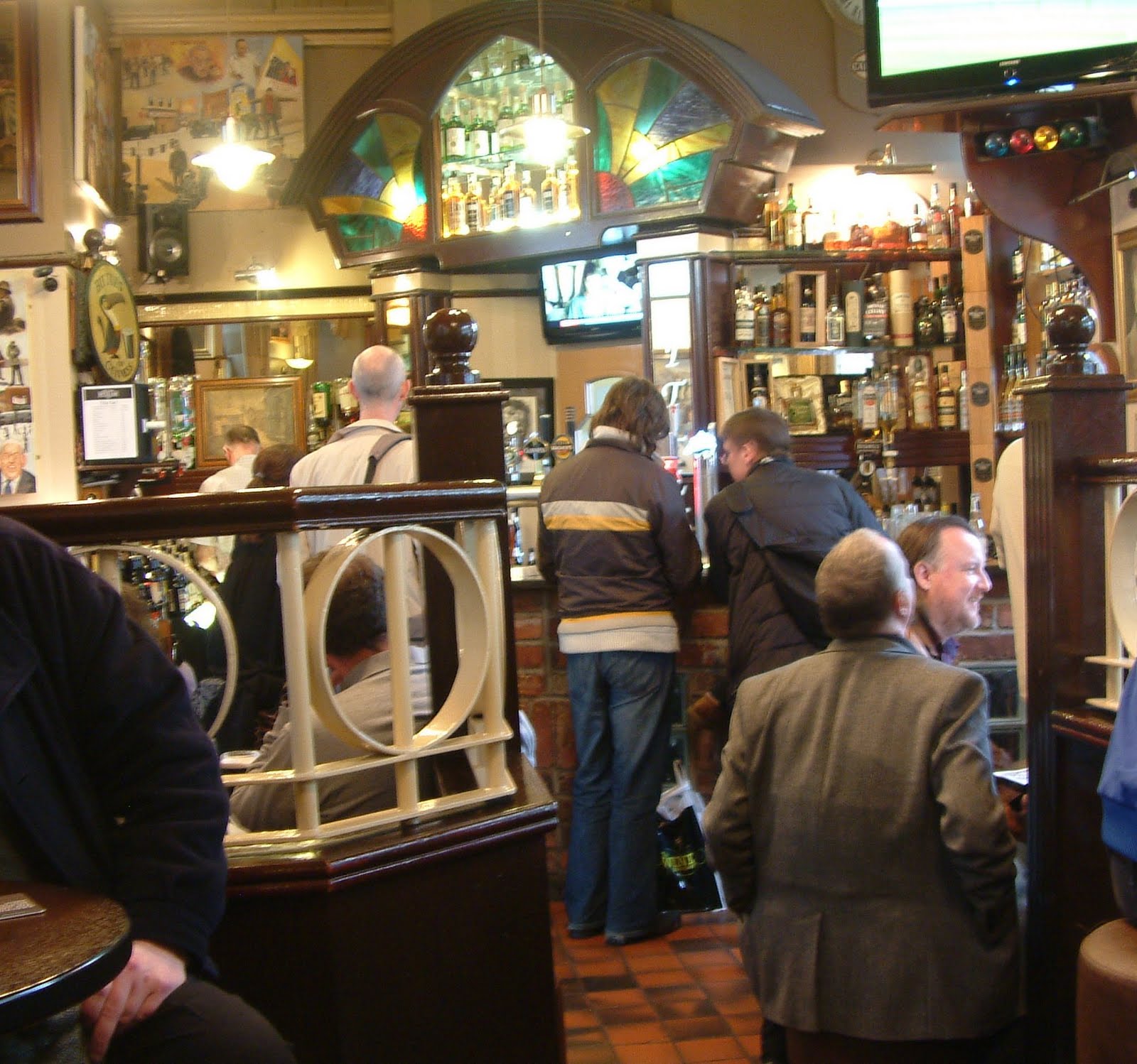 a slight tail-end staleness spoiling the fun. For unfussy boozing outside on a warm Friday afternoon, one could do an awful lot worse.By this stage it was coming close to the train time, yet I was desperate to find some Whitewater beer on cask. My list was exhausted, but there was one sure bet a few blocks away: I headed for The Crown. It's been a while since I last set foot in this Belfast institution: a lavish Victorian "Liquor Saloon", owned and maintained by the National Trust. Trade was brisk, though it wasn't full exactly, and best of all there were three handpumps for Whitewater beer, including my first encounter with Belfast Black on cask. It's not quite as good as Fuller's London Porter, but it's really not far off. It has that sour plums-and-damsons complexity next to the chocolate and liquorice. Perhaps it was just as well there was only time for one: having it in a busy bar full of Guinness drinkers started to induce money-changers-in-the-temple feelings in me. There could have been spillage.