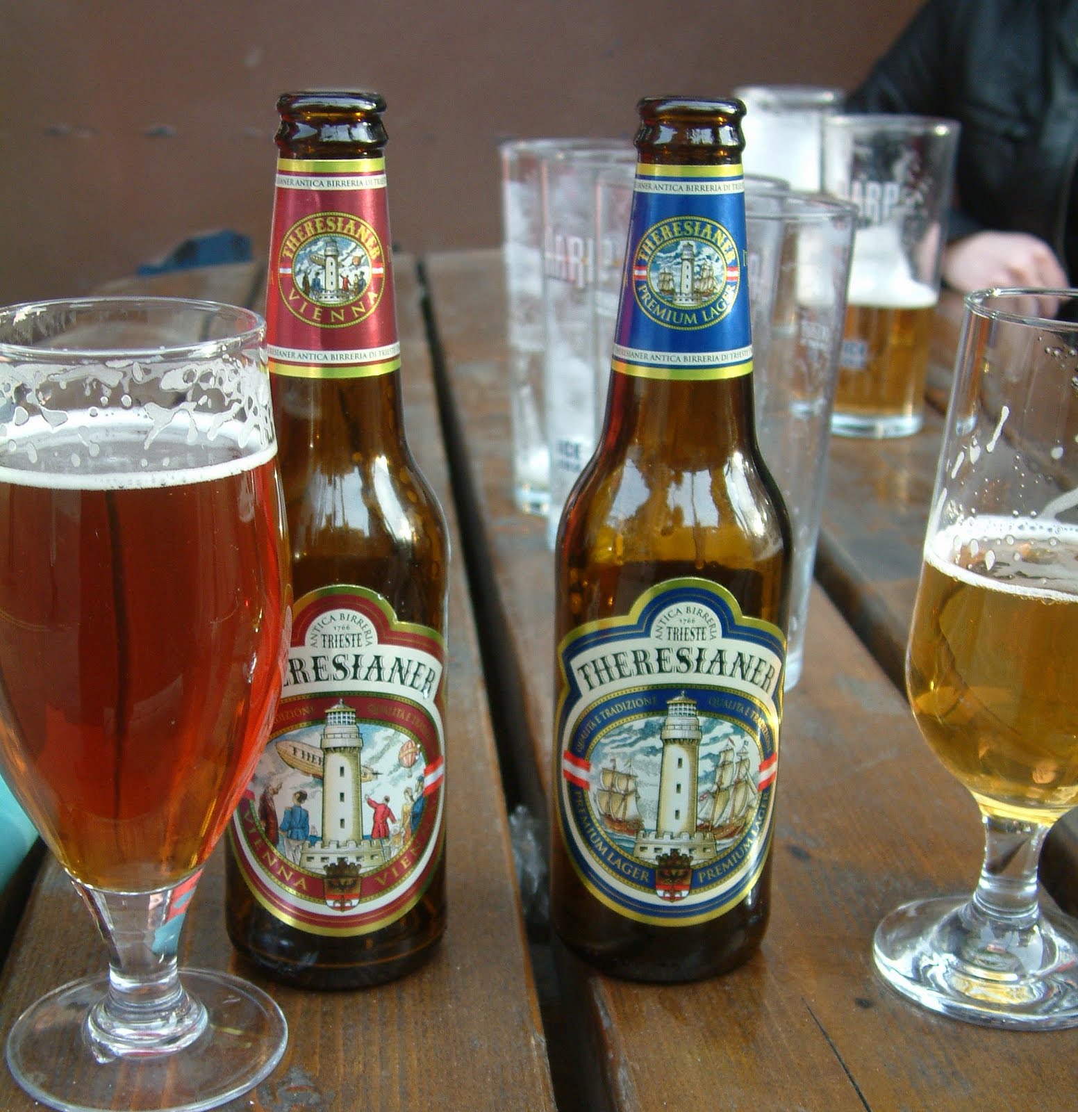 I don't remember why I'd earmarked The Garrick as worth stopping in, but I did. A decent selection of Hilden and Whitewater bottles languished at the bottom of the fridge, but I was in the mood for ticking and opted for a couple of Italian lagers. Theresianer Premium Lager is from Trieste and is brewed for a definite Austro-Hungarian feel. It has a soft yet dry character which is unchallenging but decent, as a helles should be. Theresianer Vienna is a lot like the Samuel Adams Boston Lager with which it shares a shelf in the Garrick's fridge: properly Malteser-malty, shading towards Ovaltine, with only
